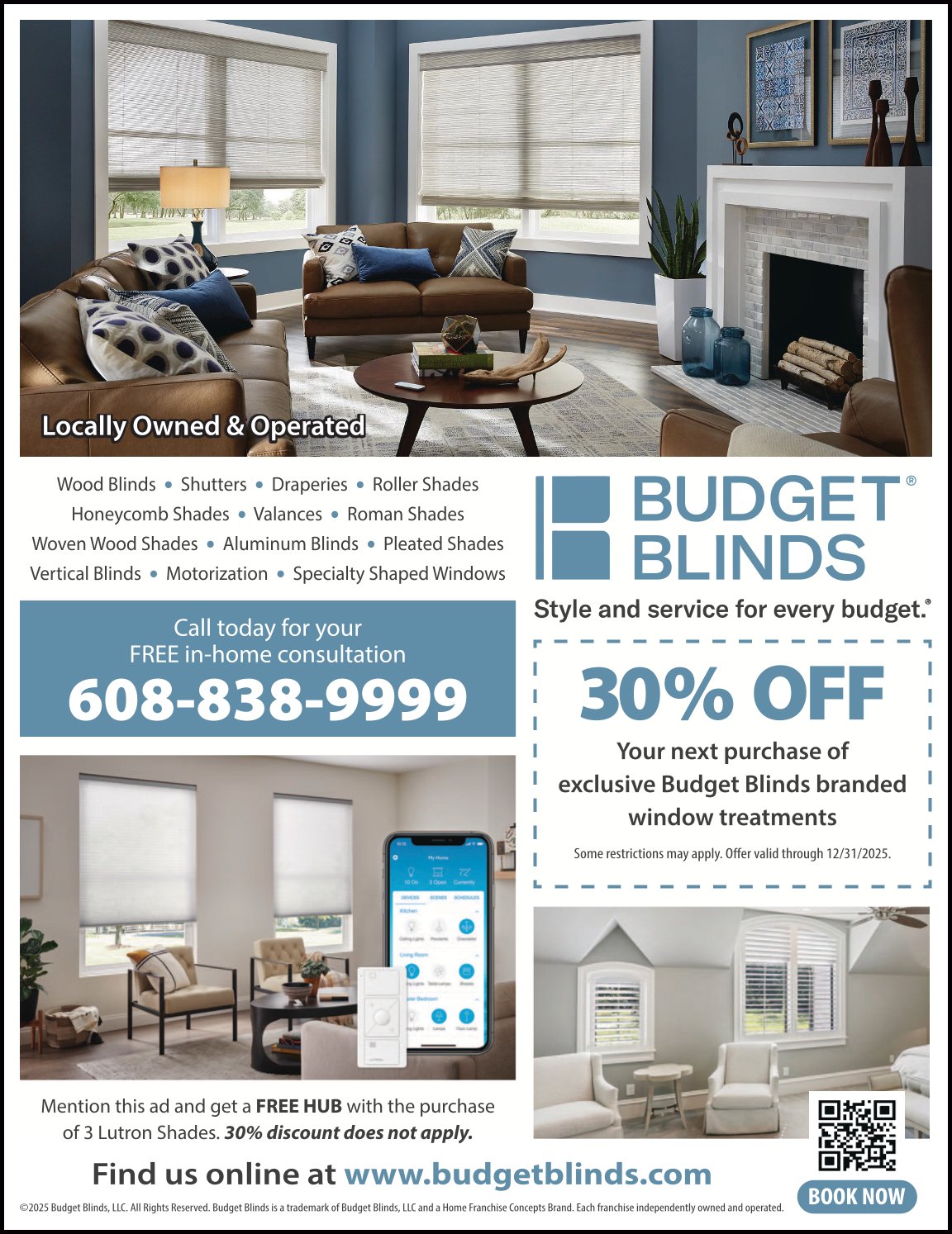 Budget Blinds of Madison East offers stylish, affordable window coverings tailored to your needs. With a wide selection of blinds, shades, and shutters, we bring comfort, privacy, and elegance to your home at a price you’ll love.