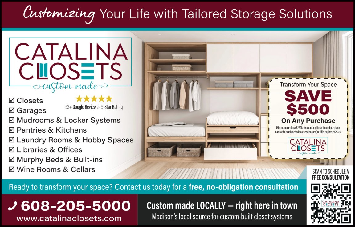 Catalina Closets transforms your living and working environments with high-quality, locally crafted organization systems tailored to your unique needs.