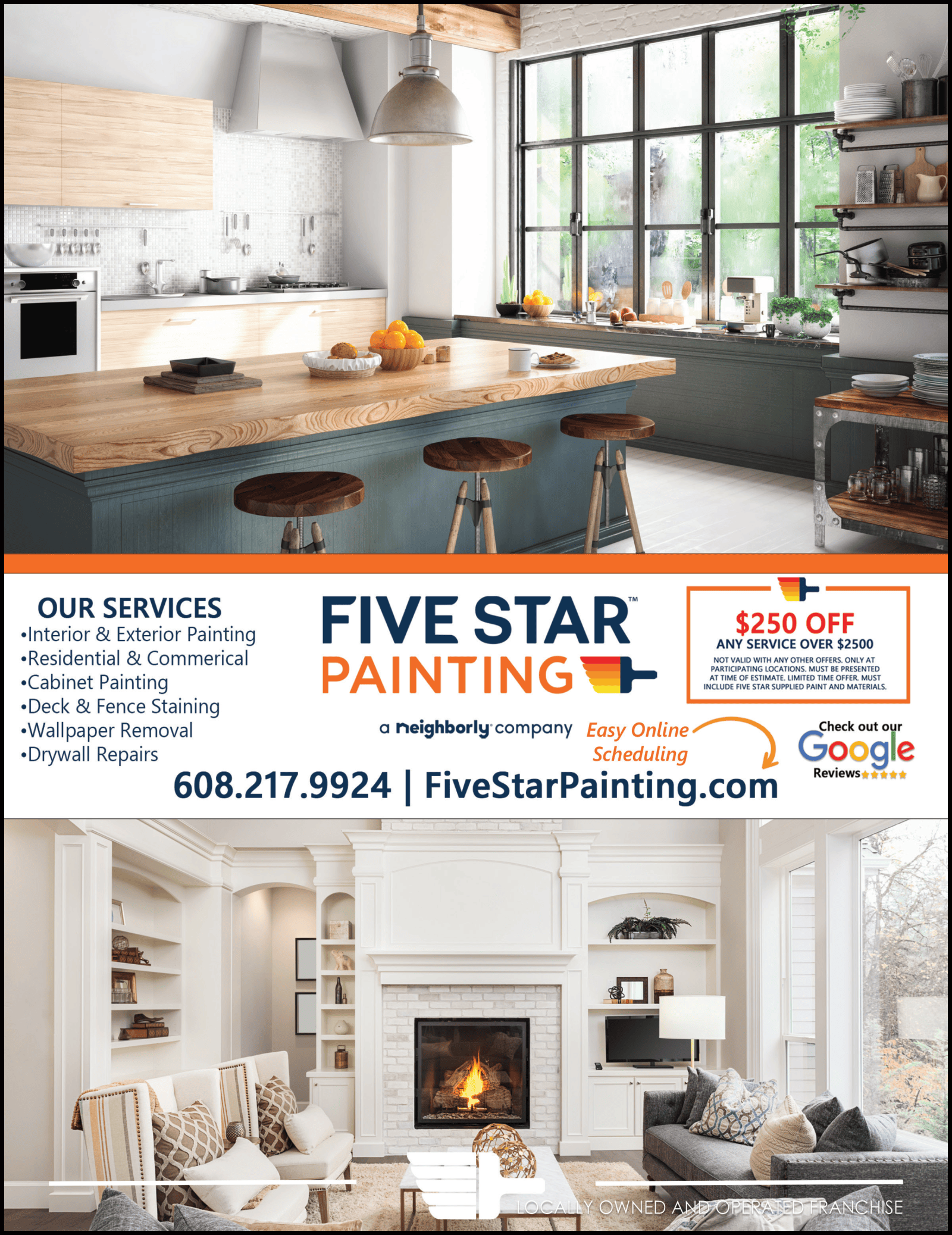 At Five Star Painting of Madison, you can expect quality-driven, professional residential painting and commercial painting services. We promise to revitalize your property and bring your vision to life, whether you need exterior home painting, cabinet refinishing, or commercial drywall repair. Our team of professional painting experts has the knowledge and skills to handle any job, and with our top-rated customer service, you will receive nothing but the best.