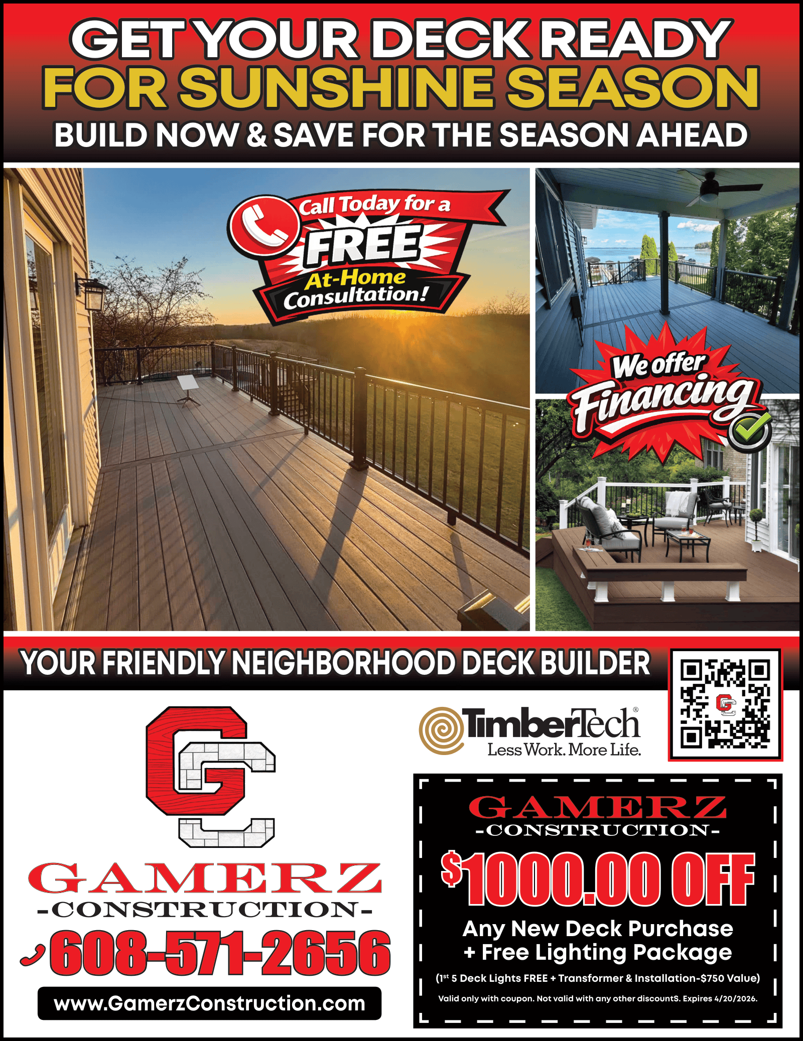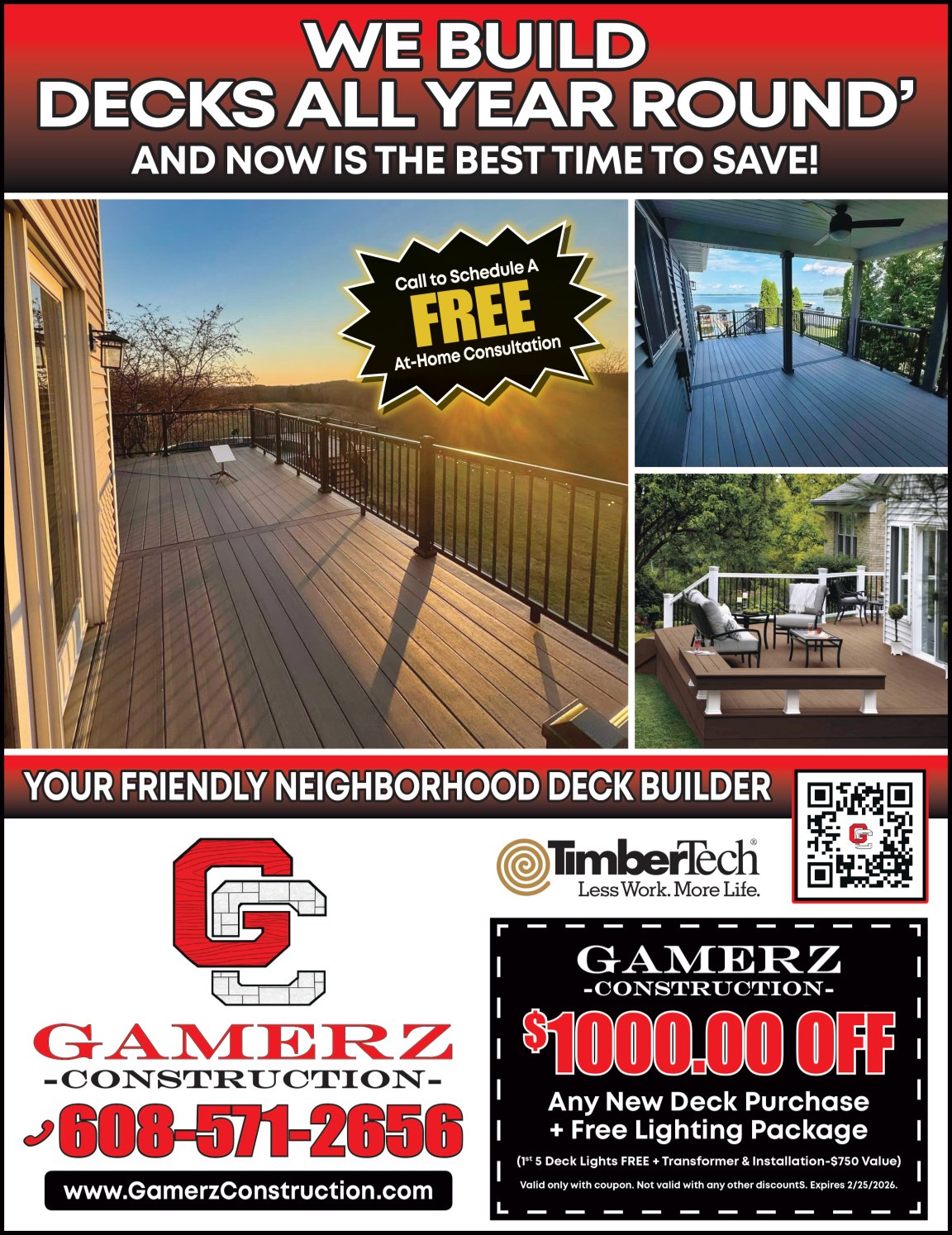 We are a local outdoor space contractor specializing in decks, concrete, & pergolas!