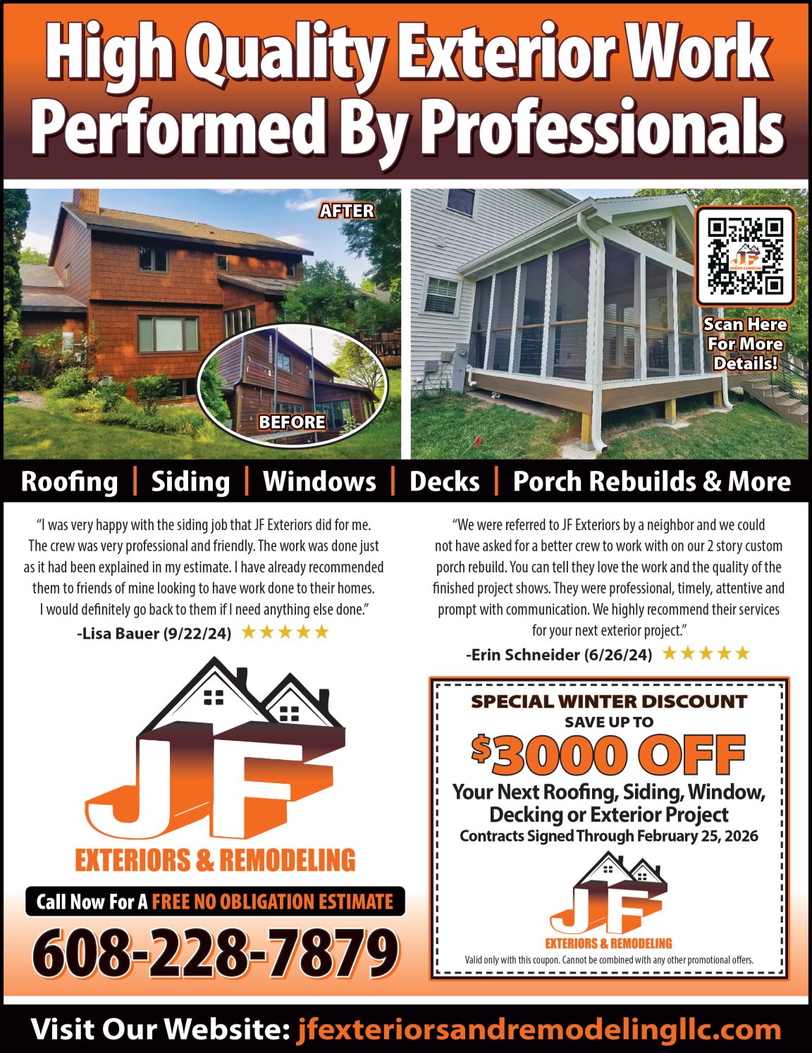 JF Exteriors & Remodeling, LLC, in Madison, WI, is the premier roofing company serving Dane County and surrounding areas since 2017.