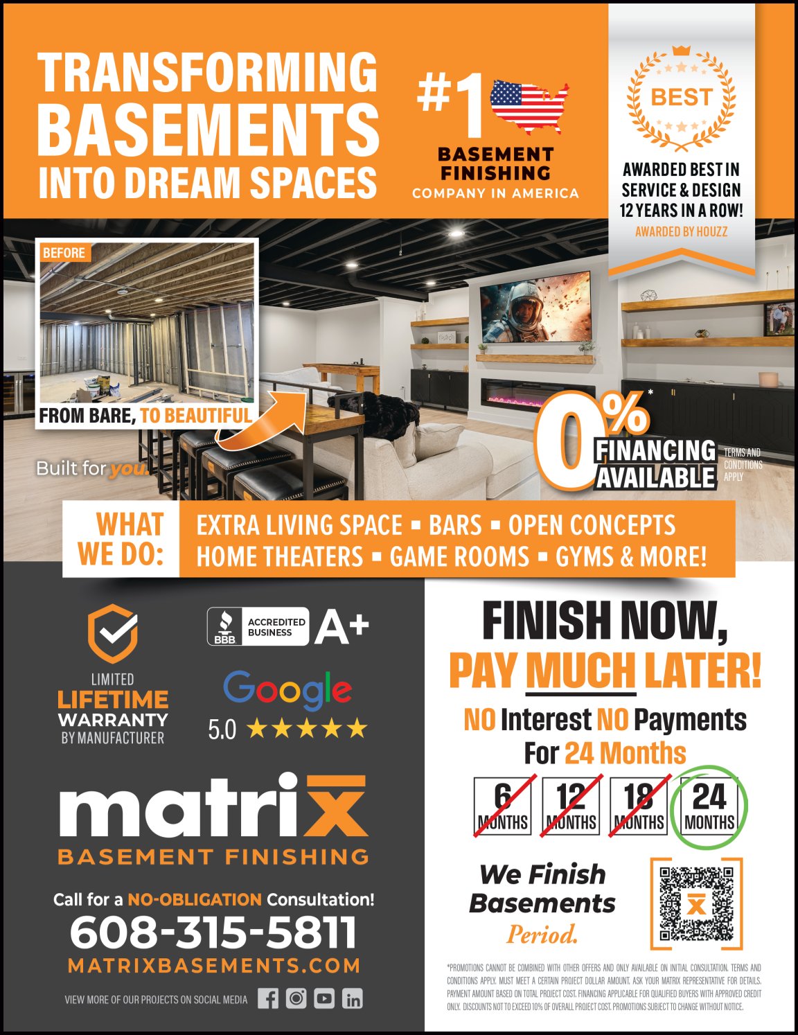 Specializing in transforming basements into functional, beautiful living spaces. Using moisture-resistant materials, they offer custom designs for home theaters, wet bars, bedrooms, and more. With years of experience and a reputation for quality, Matrix Basements is the go-to choice for homeowners in Madison.