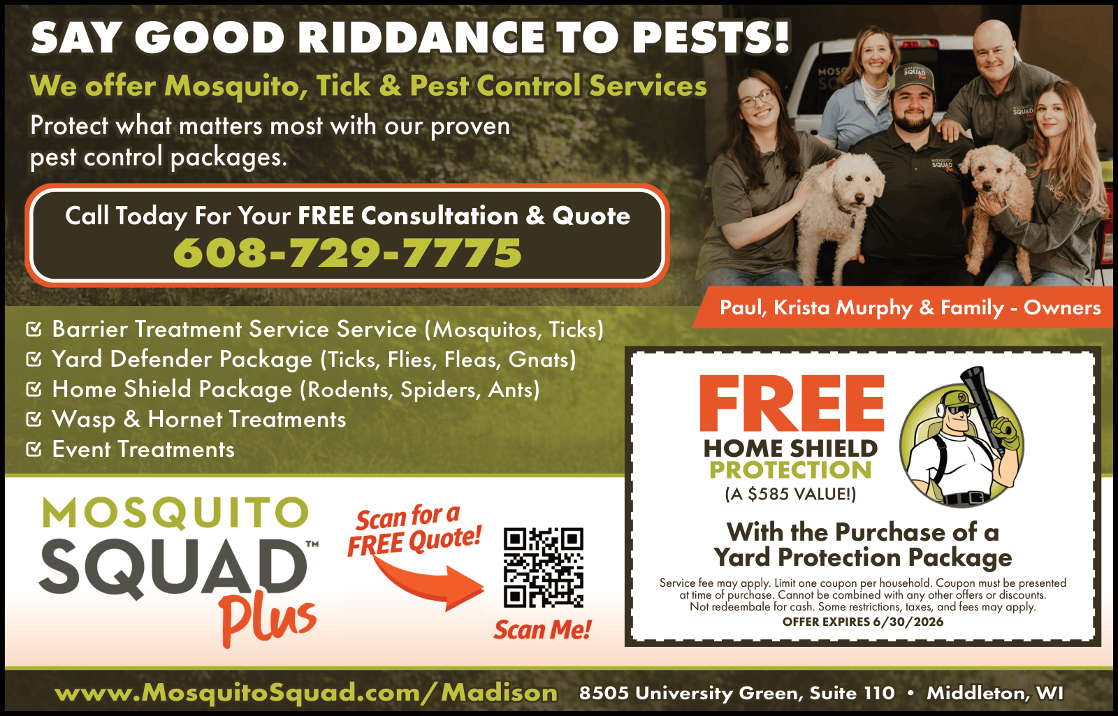 Mosquito Squad of Madison is a leading provider of professional mosquito, tick, and pest control, trusted nationwide. Our signature Protective Barrier Treatment effectively helps control pests and the diseases they can carry.