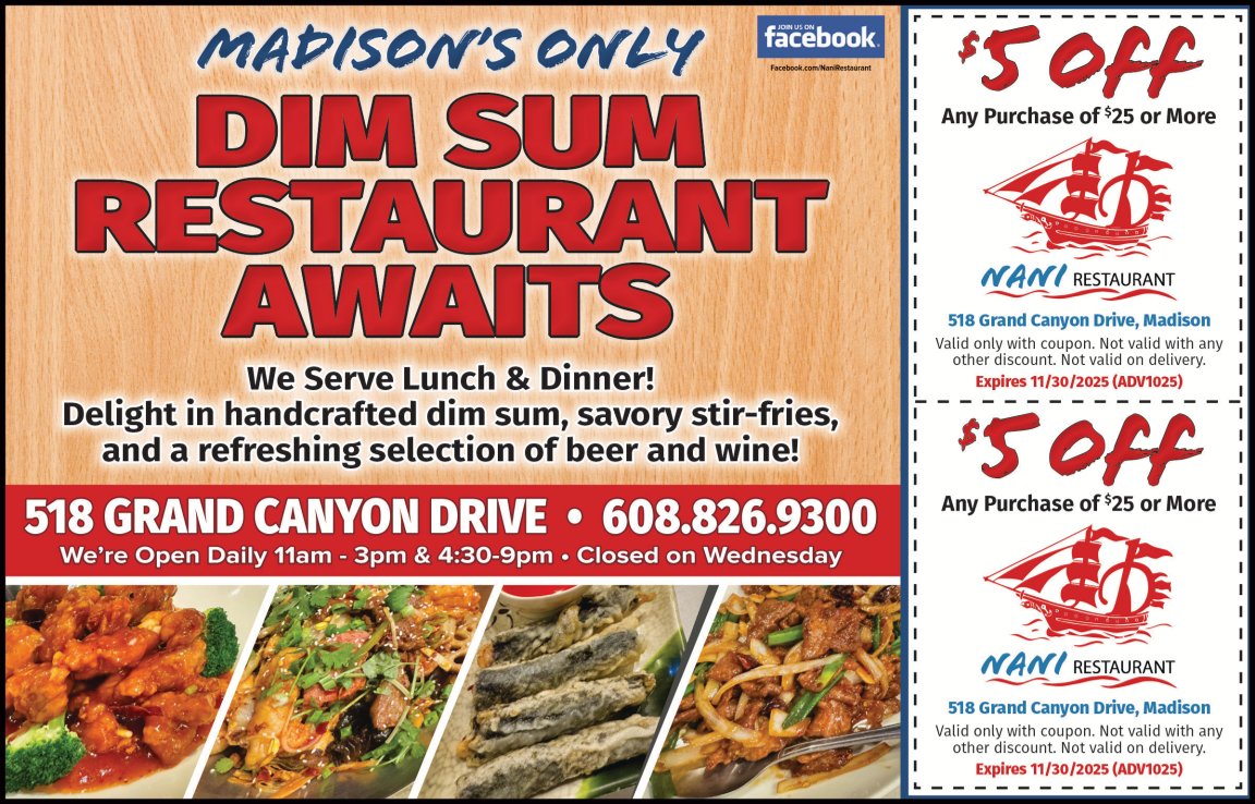 Nani Restaurant is a cornerstone in the Madison community and has been recognized for its outstanding Chinese cuisine, excellent service and friendly staff.