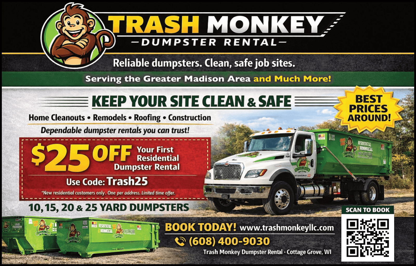 Reliable dumpster rental services in Madison, WI for residential cleanouts, commercial projects, and construction debris. Fast delivery, competitive rates, and hassle-free pickup. Book yours today!