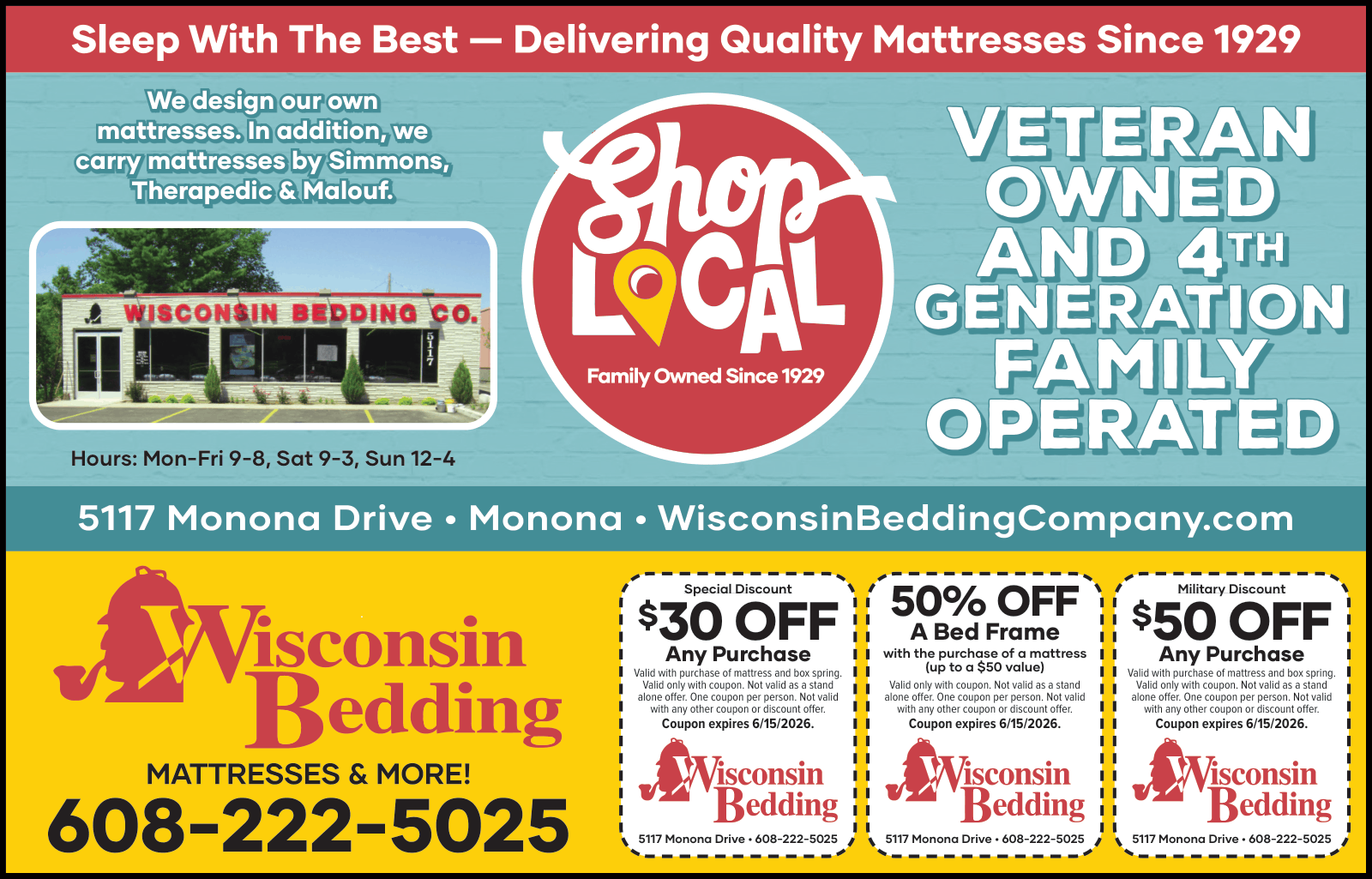 Family Owned Since 1929. Veteran Owned. Shop Local. Mattresses & More. Wisconsin Bedding "We're Worth Investigating"